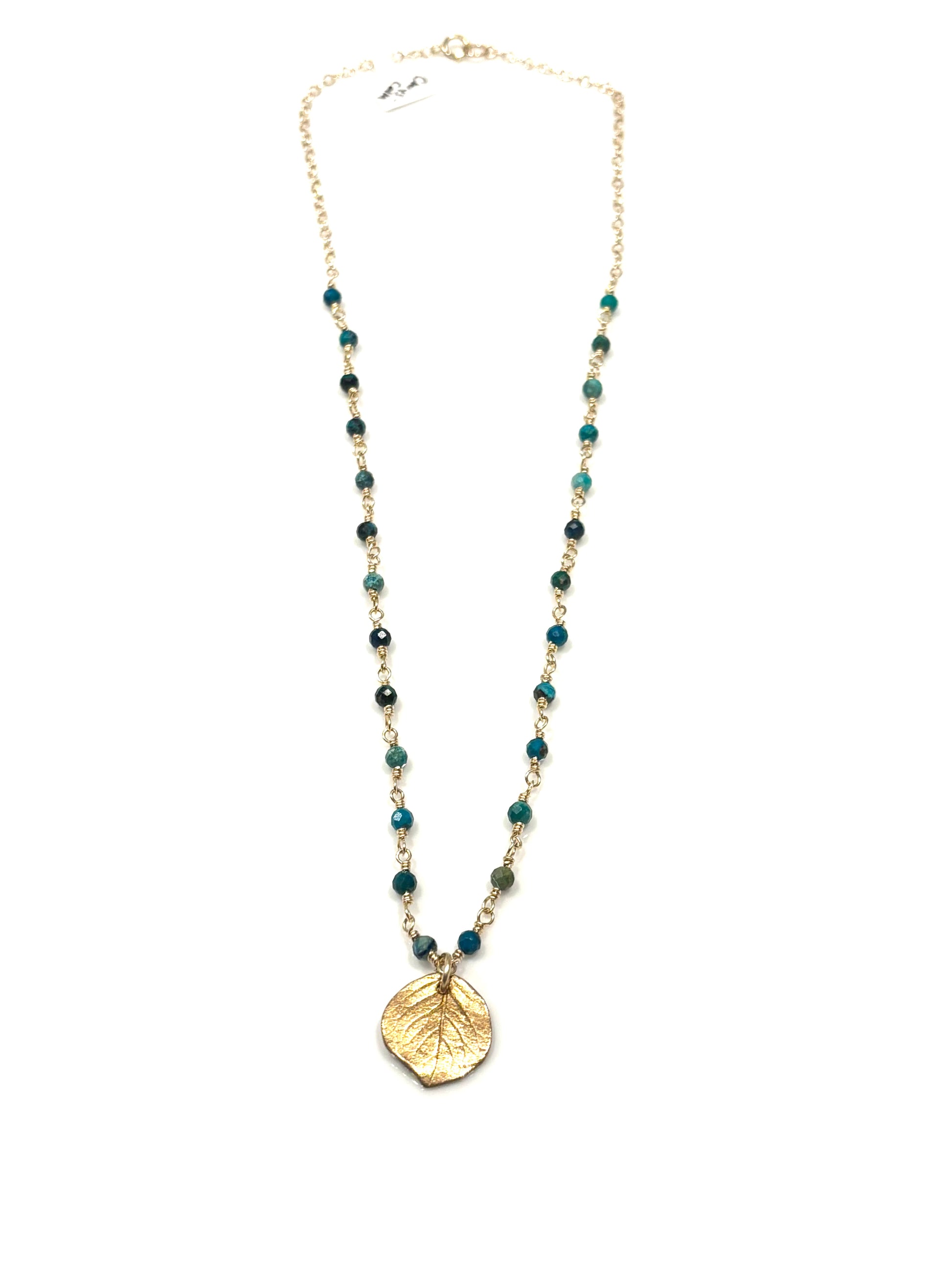 Chryscolla Gold-Filled Necklace w/Bronze Rose Leaf