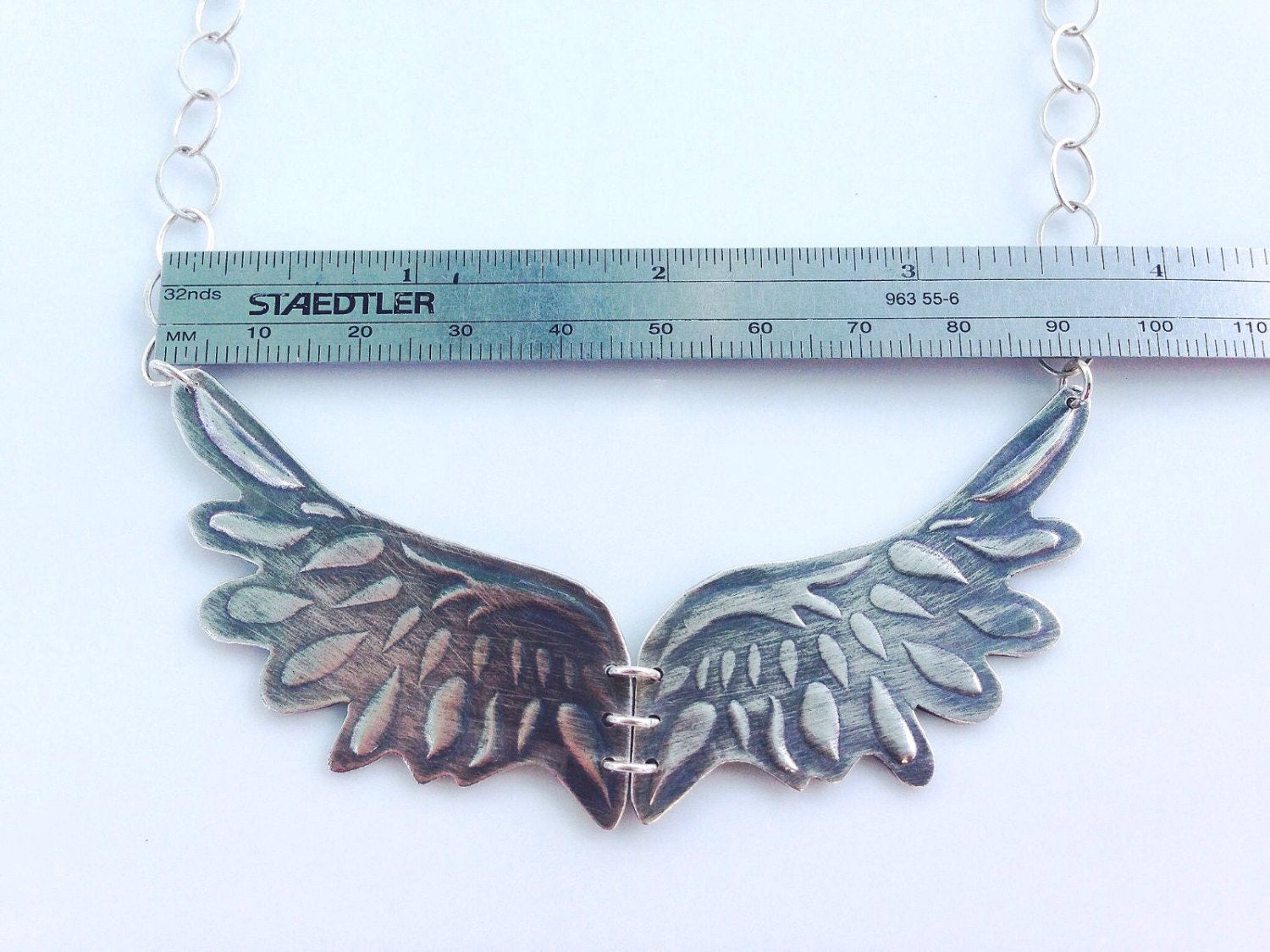 Hand formed recycled pure silver (.999) wings with sterling silver chain and findings.